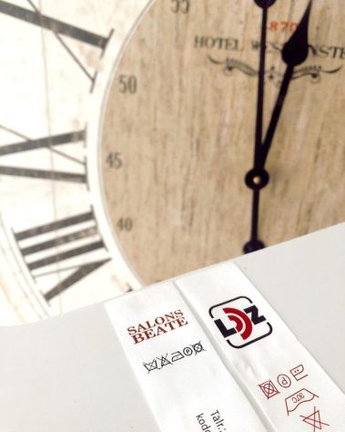 Такие этикетки для одежды рекомендуется использовать в случаях, когда они находятся в непосредственном контакте с кожей. При холодной резке края распускаются, поэтому бирки пришиваются с обеих сторон.